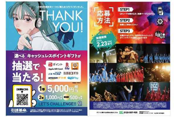 ~特別席であるステージ最前列「引越革命シート」を購入いただいた方の中から抽選で、選べるキャッシュレスポイントをプレゼント~