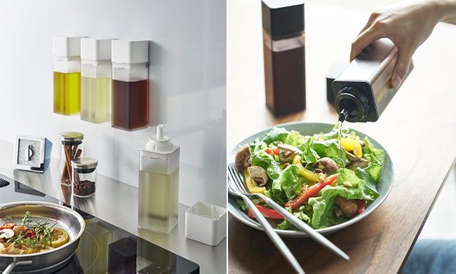 マグネットで取り付けできる調味料ボトルや固形の入浴剤を収納できるストッカーなど、新商品発売中です。