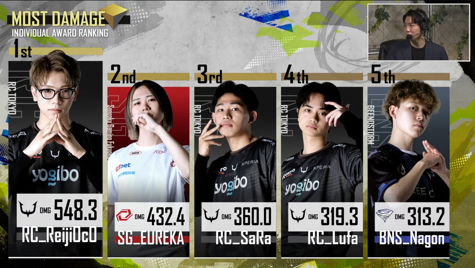 *3=同上における、1Round当たりの平均ダメージ量が、最も多い選手に贈られる賞