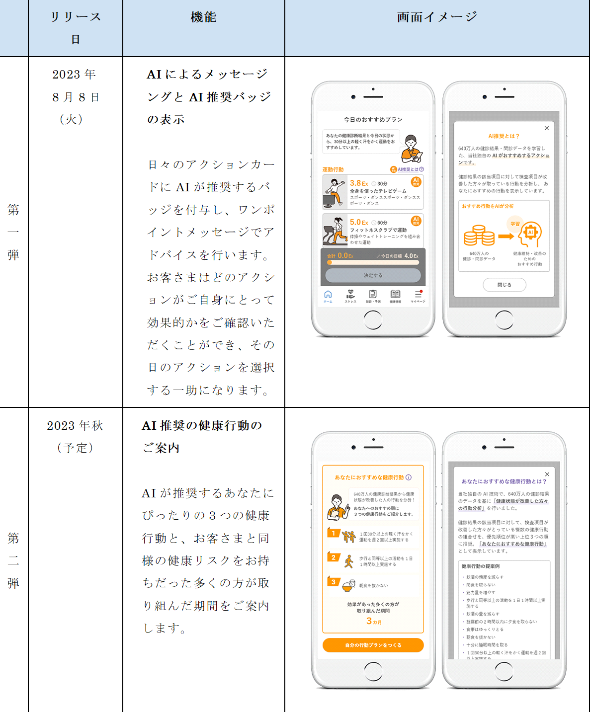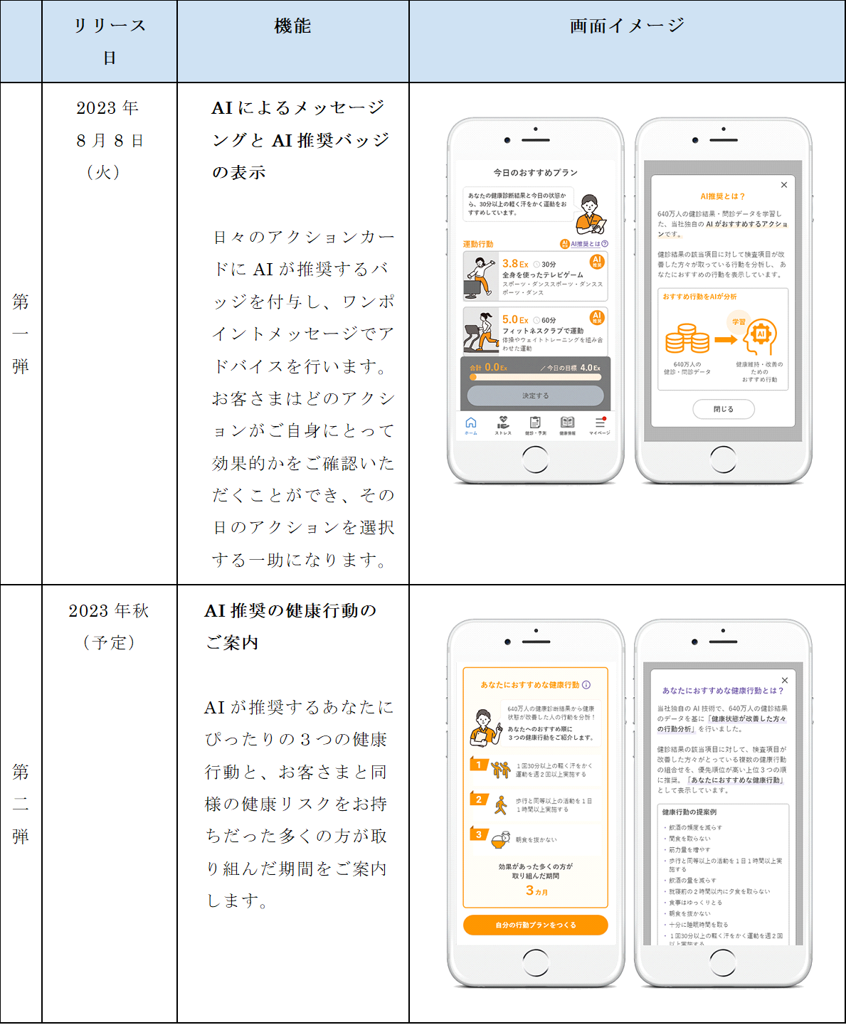 これまで以上にお客さまに納得感をもって日々の健康行動を行っていただくことを目的に、自社開発AIモデルを活用した本機能を提供します。