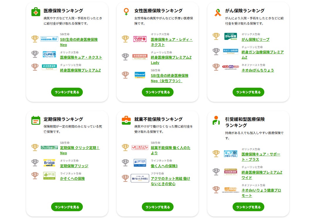 ※ランキングは各保険商品の優劣や推奨を示すものではなく、特定期間の申込件数、資料請求件数、及びアクセス数に基づいて作成したものです。
