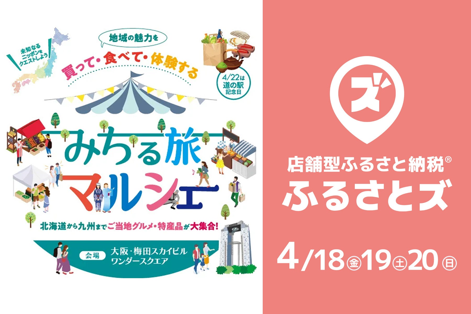 店舗型ふるさと納税『ふるさとズ』4月18日〜20日に大阪・梅田で開催される「みちる旅マルシェ」に参加します。