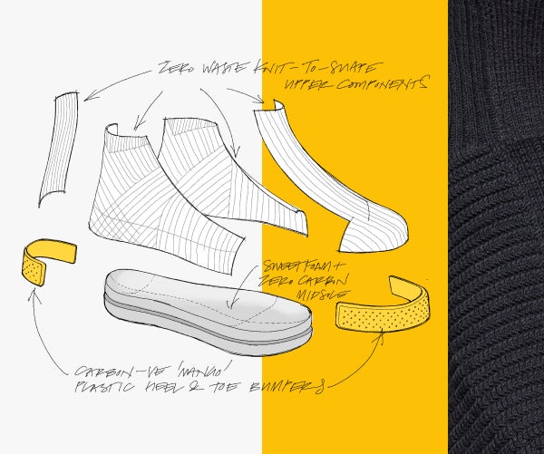 「M0.0NSHOT Zero」は、Allbirdsが創業以来、事業や製品において体系的にカーボンフットプリントを削減することに注力してきた、長年の努力の集大成と言えます。2018年には、カーボンネガティブなサトウキビ由来のグリーンEVAを使用したミッドソールフォーム「SweetFoam®」を生み出し、「M0.0NSHOT」で使用する新しいフォームに反映させました。そして2020年、Allbirdsはファッションブランドとして初めてカーボンフットプリントを商品に表示することになりました。その1年後には、アディダスとのパートナーシップを発表し、その時点で両ブランドとして最も低炭素なシューズである「Adizero x Allbirds」を共同開発しました。それらのプロジェクトを通じて、ネット・ゼロカーボン・シューズの開発は自然なことでした。オールバーズのイノベーションを司るチームは、2022年にこのチャレンジに挑み、ブランドのこれまでの学びをすべて活かして「M0.0NSHOT」をデザインし開発に着手しました。