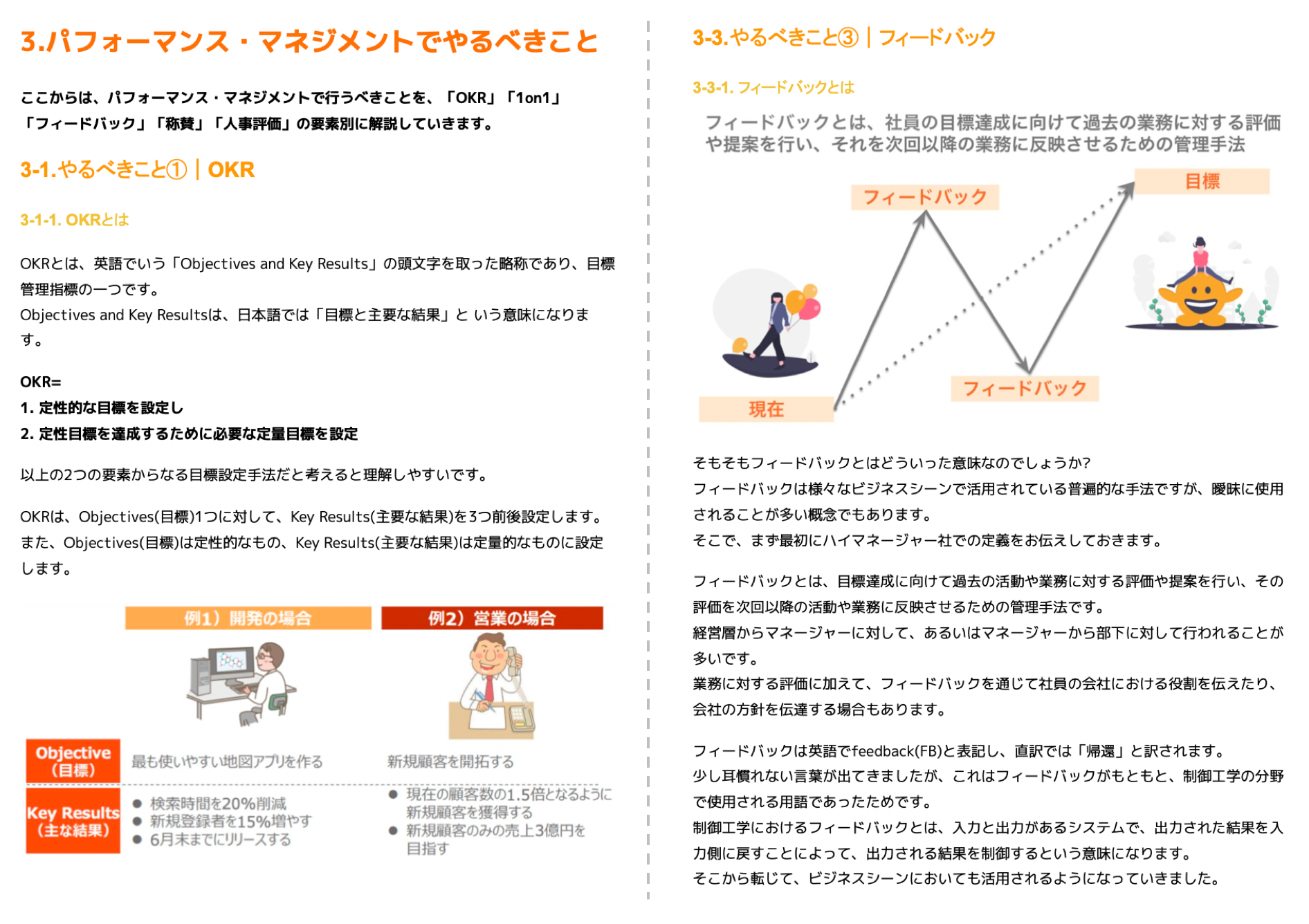 OKRや1on1、リアルタイムフィードバック、人事評価等などパフォーマンス・マネジメントを実現するオールインワンクラウド「HiManager」を提供する、ハイマネージャー株式会社(代表取締役CEO:森謙吾)は、経営者・人事担当者様のパフォーマンス・マネジメントへの理解と導入支援を目的にした、「パフォーマンス・マネジメントパーフェクトガイド」を無料公開しました。