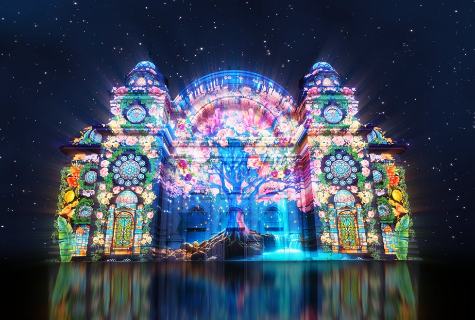 西洋画、現代的グラフィック、そして最新のCG技術など多彩な映像手法と、迫力ある音楽の響きが融合し、あたかも建物自体が物語を語るかのように、過去と未来が交錯する「繁栄」の軌跡を鮮やかに表現。