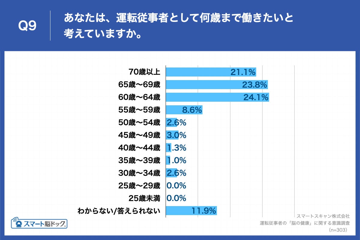 - 現役運転従事者の7割以上が「60歳以上でも働きたい」と回答
