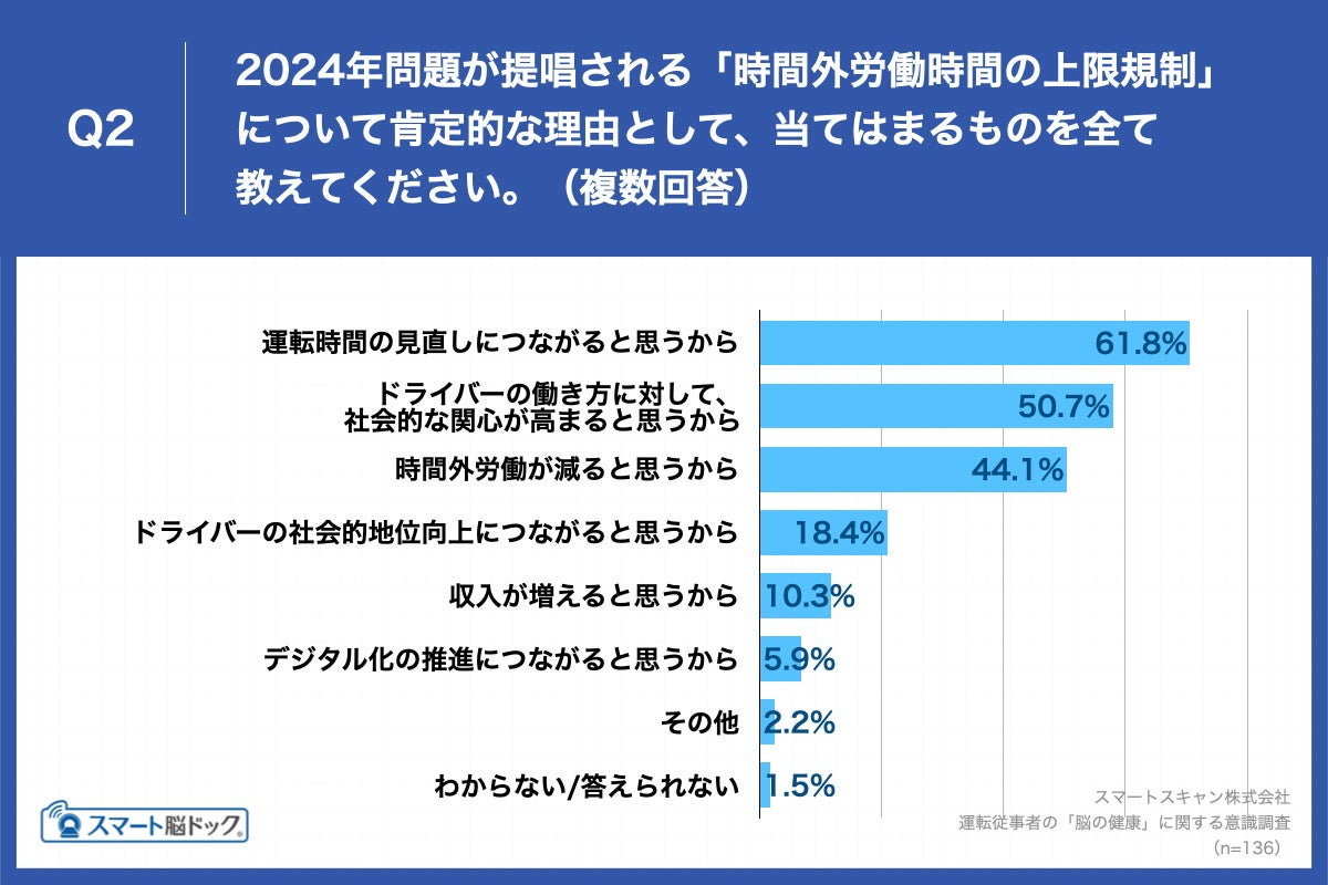 - 肯定的な理由として、「運転時間の見直しにつながると思うから」が61.8%で最多