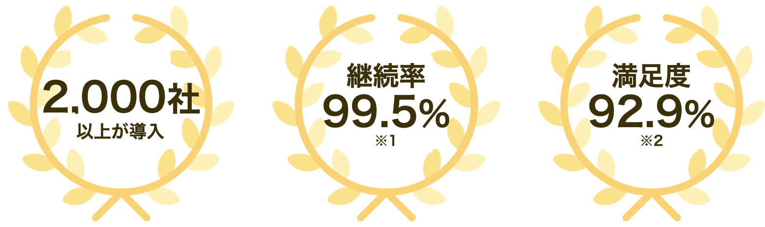 2,000社以上が導入し、継続率99.5%(※1)・満足度92.9%(※2)という高い評価を維持するサービスに成長しました。