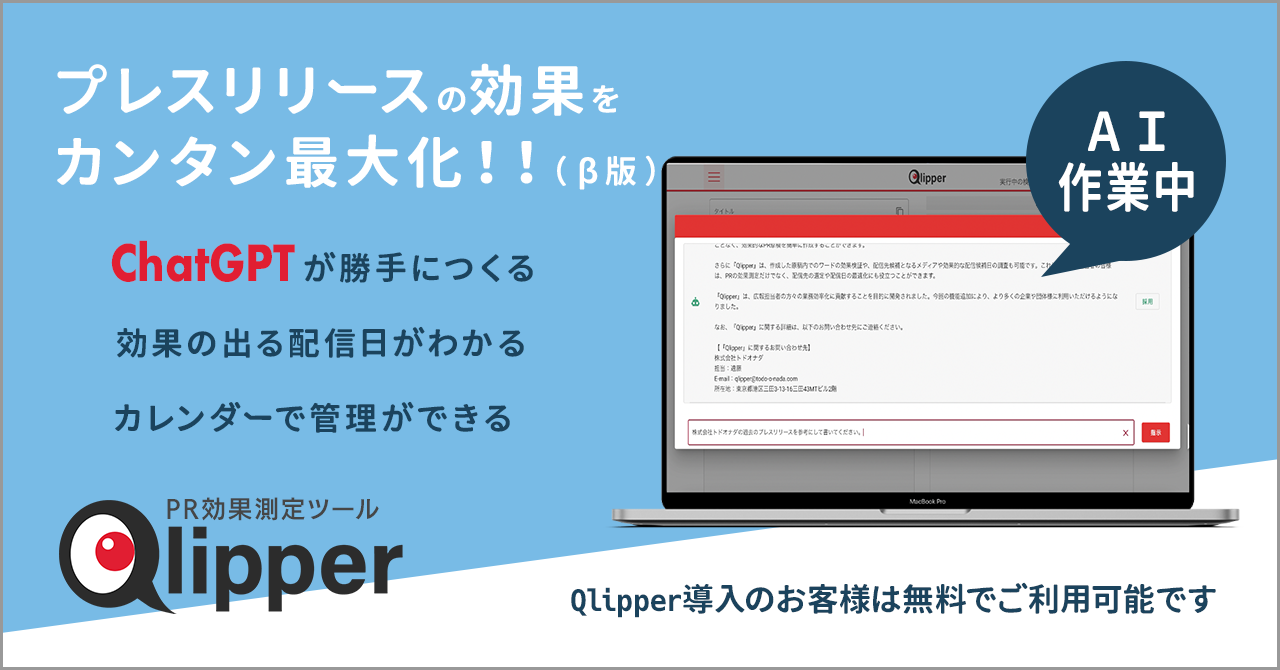 PR効果測定ツールQlipper、ChatGPTによるプレスリリース作成、AIの配信日提案、スケジュール一元管理の機能(β版)を追加
