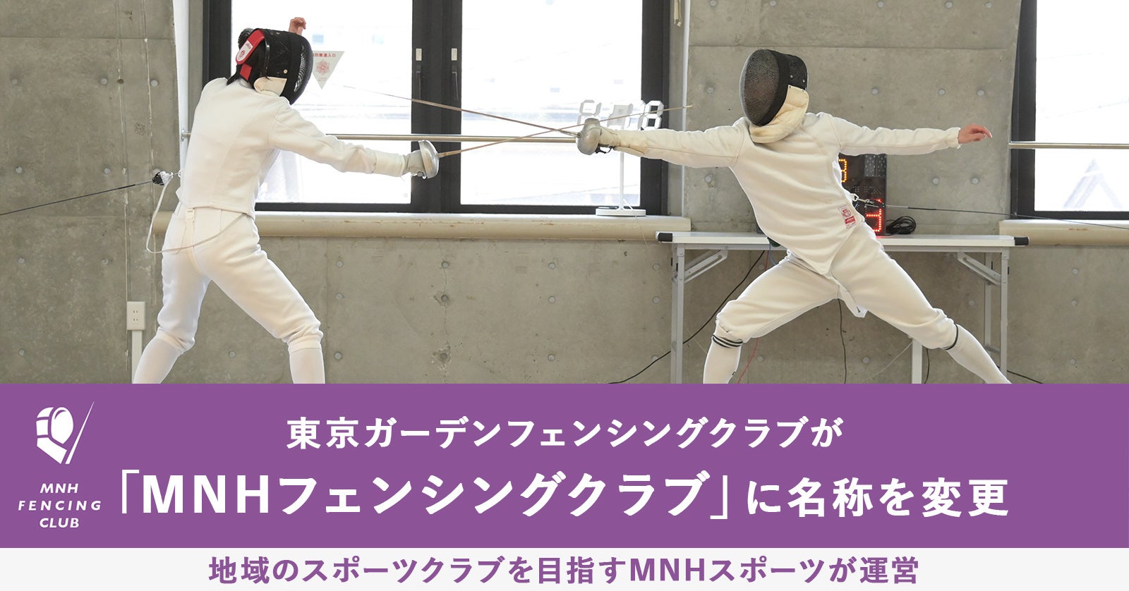 当クラブを運営してきた一般社団法人ガーデンは、フェンシングに限定しない多様な生涯スポーツの地域への浸透と、そのスポーツに関わる雇用創出の推進のため、2023年6月1日に「MNHスポーツ」へと組織体制を変更しました。MNHスポーツの設立に伴い、クラブ名も「MNHフェンシングクラブ」に改名いたします。