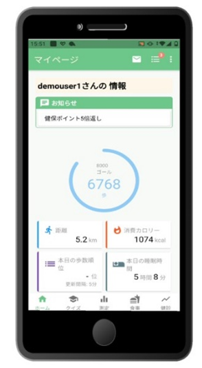 主な機能としては、アプリ内での健康診断結果の把握や、運動・食事・睡眠の生活ログや勤怠状況などのデータを一元管理することで、職員の健康情報の見える化を行います。また、歩行イベントの開催など、行動経済学「ナッジ」を用いて職員の健康への関心を高め、職員のヘルスリテラシー向上をめざします。
