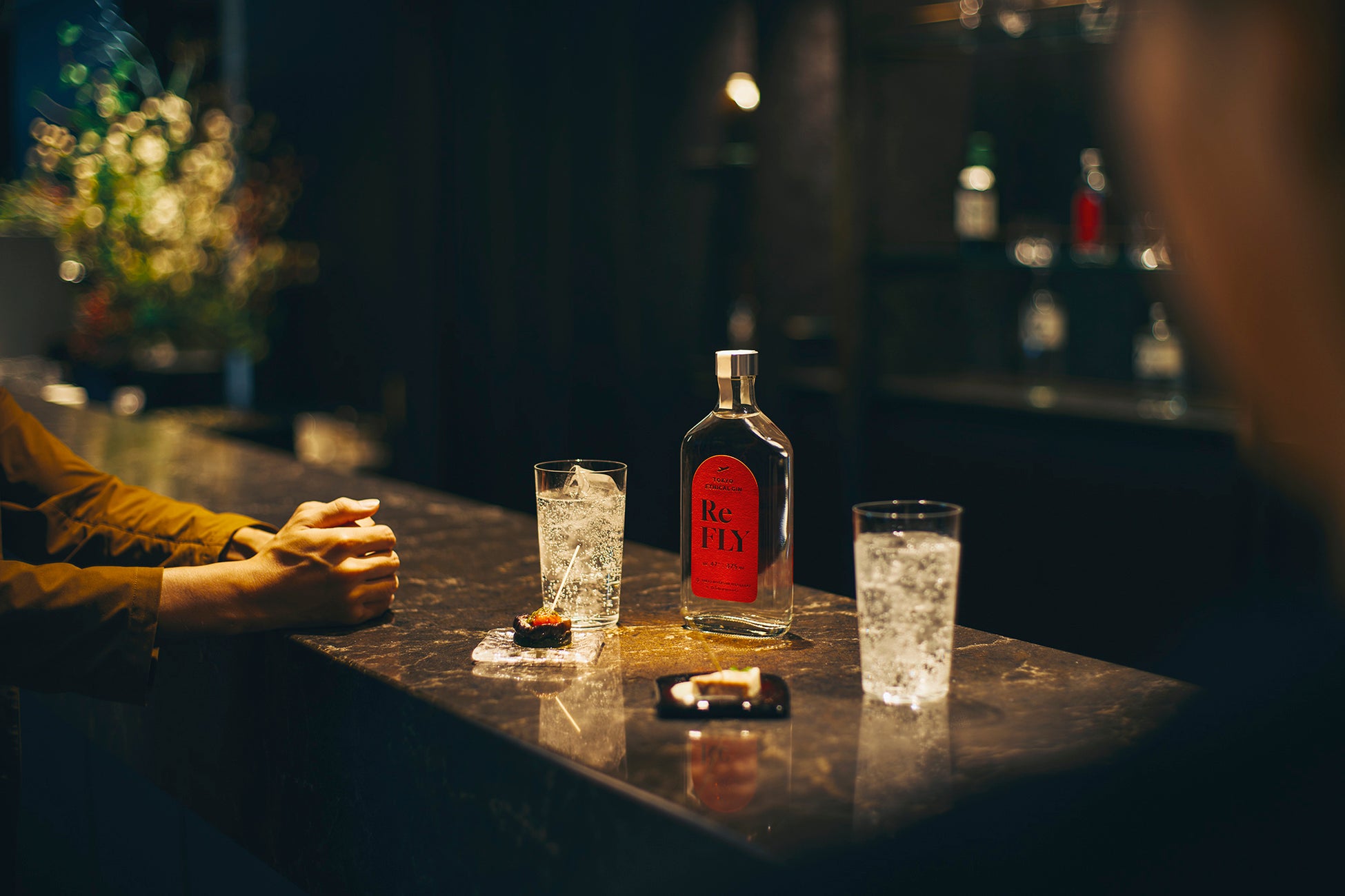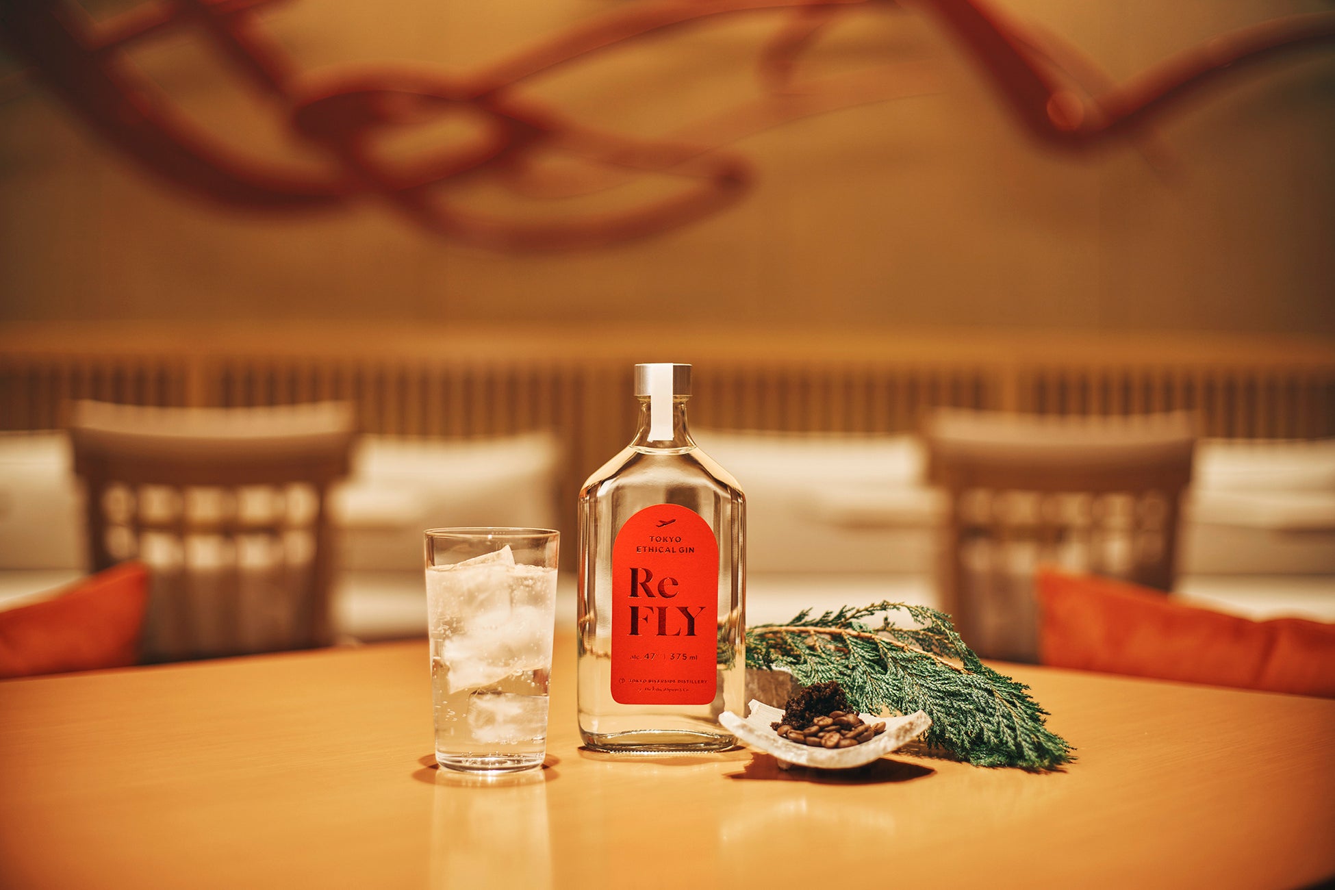 おすすめのお召し上がり方は、『Re FLY』と炭酸水を1:3〜4で割ったジンソーダ。ヒバや柚子の清涼感が際立ちます。また、ラウンジコーヒーのメロウな風味を楽しむには、『Re FLY』をトニックウォーターで割ったジントニックもおすすめです。