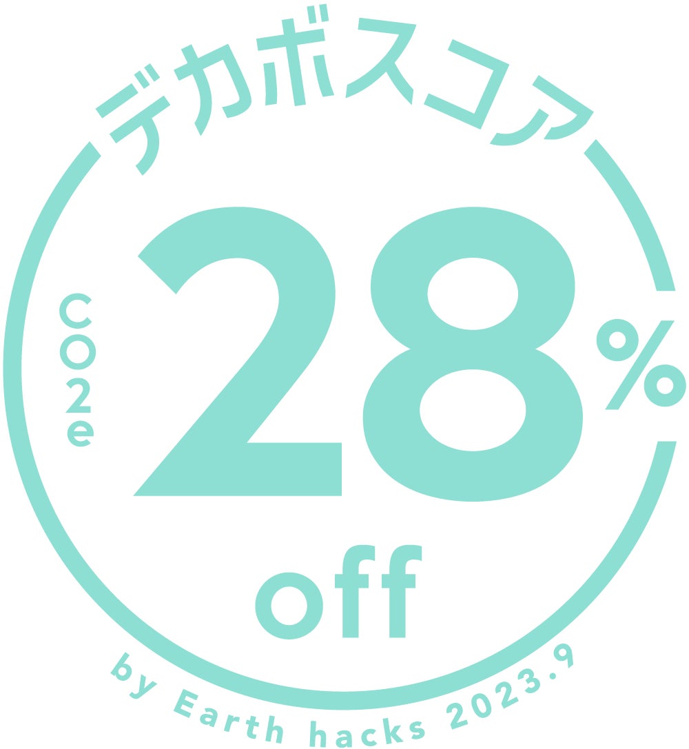 商品やサービスの環境価値における新しい選択基準「デカボスコア」は、「二酸化炭素相当量に換算した値(CO2e)の削減率」を示したマークです。生活者一人ひとりのアクションで脱炭素社会を推進する共創型プラットフォーム「Earth hacks」が提供しています。
