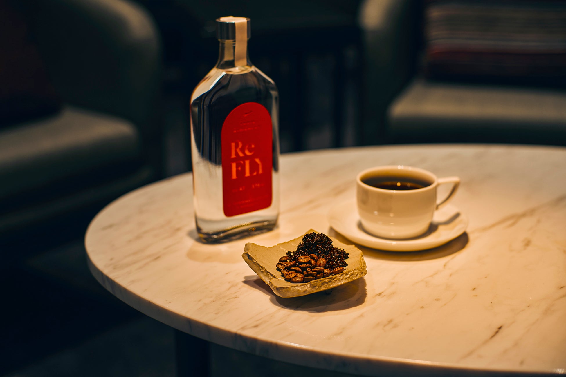 JALのラウンジの “コーヒー粉を再生” した国産クラフトジン『Re FLY』11月1日より発売
