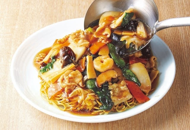 - パリパリ香ばしい焼き麺と、アツアツのとろ~り濃厚あん