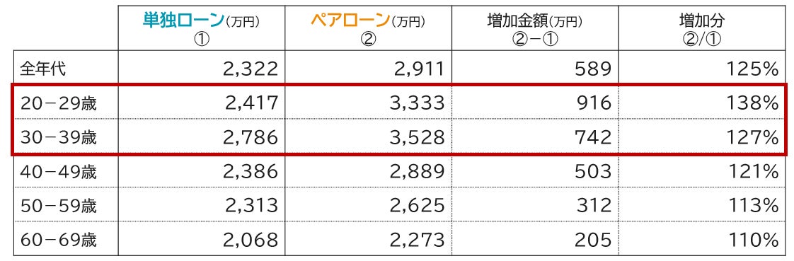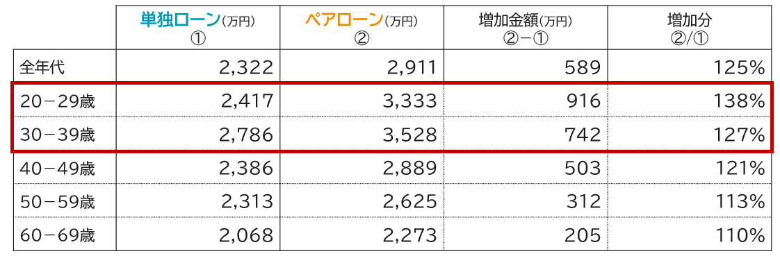 昨年、ミライ研では独自アンケート結果をもとに、住宅ローン利用者の単独ローンとペアローンの現状を調査しました。その結果、20代では約2割がペアローンを利用していること、また、当初借入額では単独ローンよりもペアローンのほうが高額で、特に20代のペアローン借入額は「単独ローンとの比較で150%の水準」となっていることを公表しました。