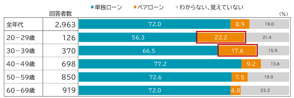 1.20代・30代の住宅ローン利用状況は5人に1人がペアローン