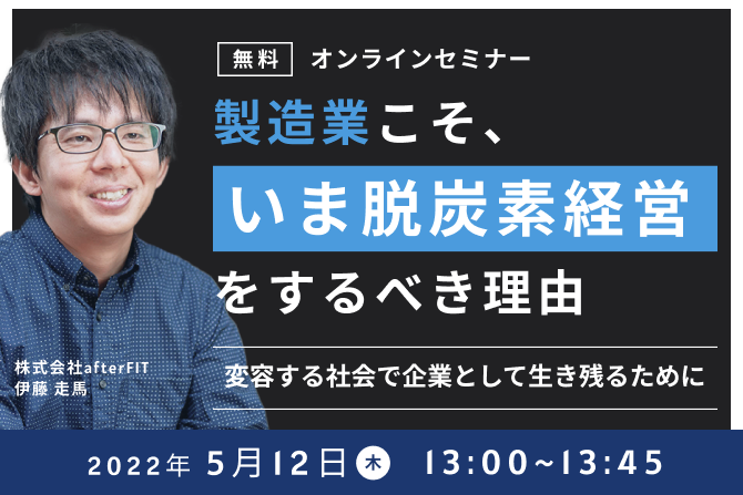 【脱炭素経営セミナー】 製造業こそ、いま脱炭素経営をするべき理由 〜変容する社会で企業として生き残るために〜