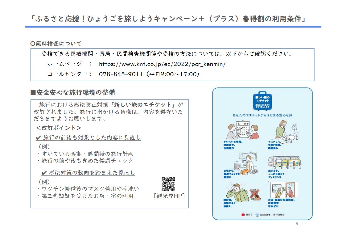 旅行中は「新しい旅のエチケット」や「兵庫旅スタイル」を実行してください。