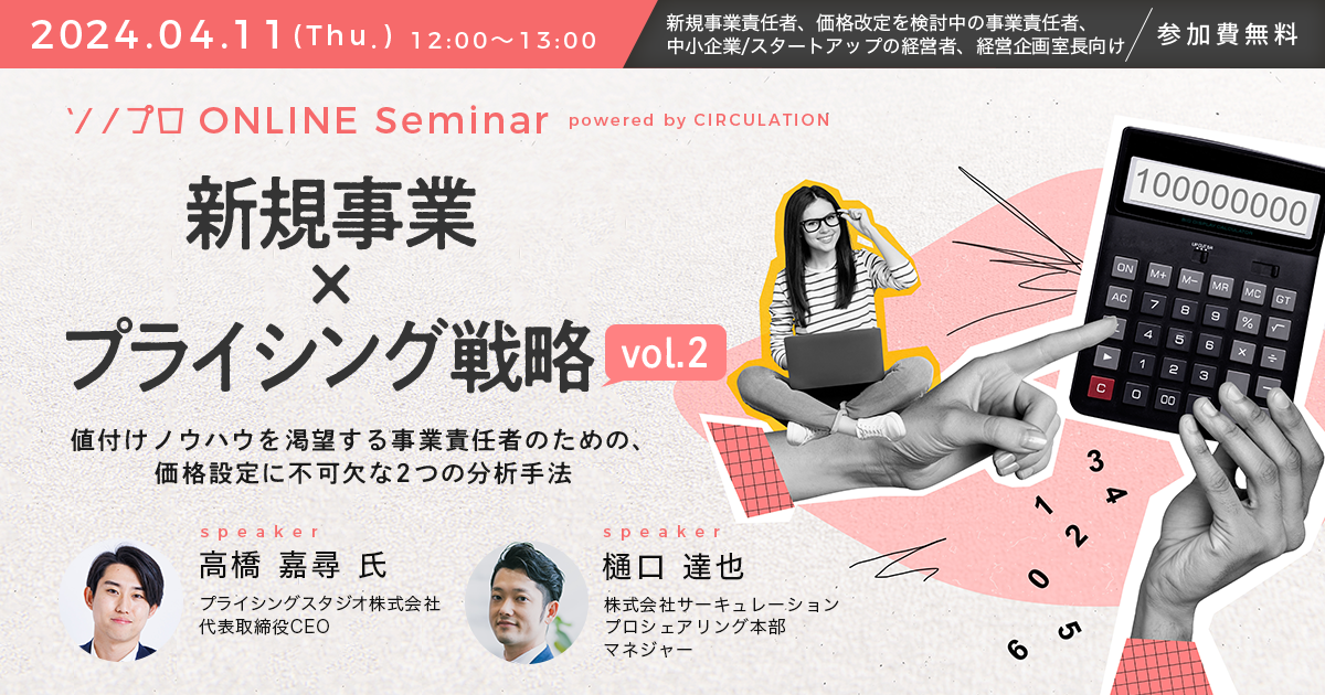 ・注意事項:本ウェビナーは、㈱サーキュレーションとプライシングスタジオ㈱の共同開催となります。