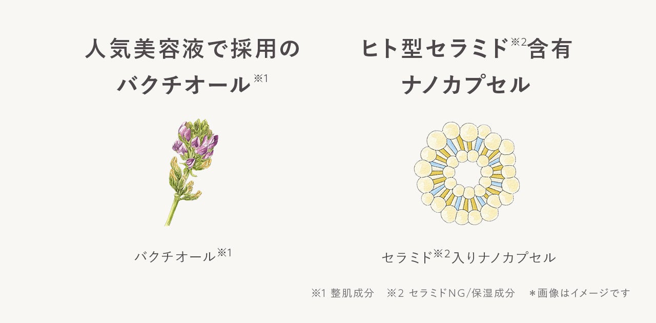 ~バクチオール※1・セラミド配合※2。スキンケア直後のような、みずみずしいなめらかな肌へ~