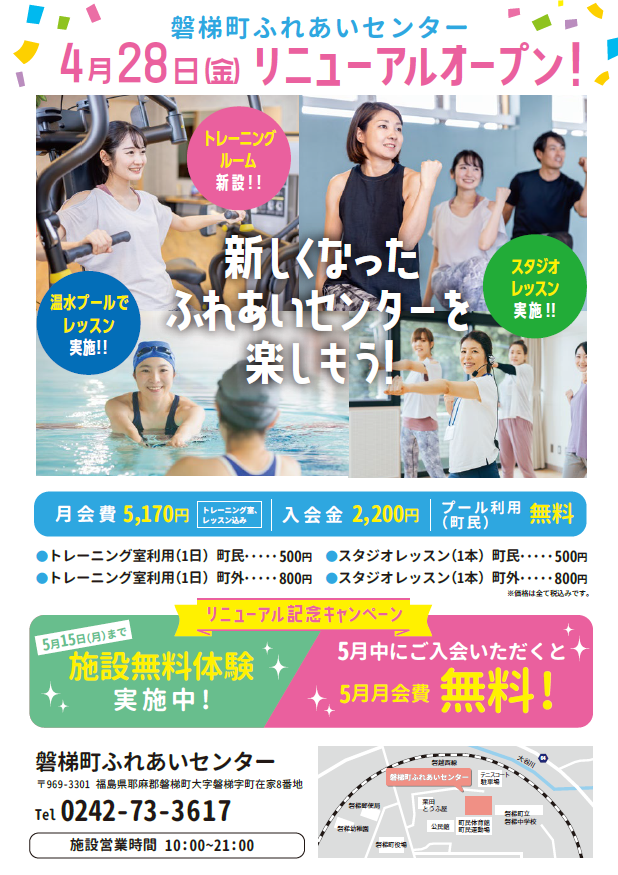 【福島県磐梯町】官民協働でトレーニングルームや充実のレッスンプログラムを導入し公共体育施設「磐梯町ふれあいセンター」がリニューアルオープン!