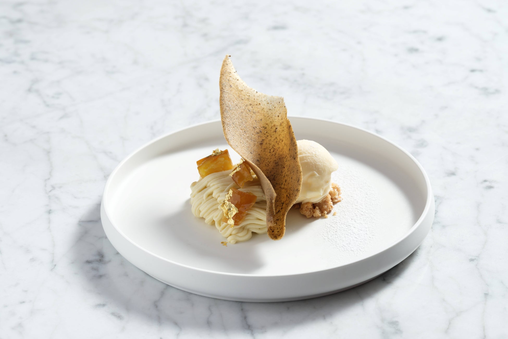 ・五郎島金時のモンブラン バニラアイスクリーム 加賀棒茶チュイルとソース