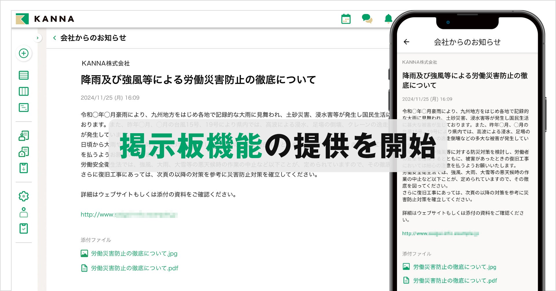 現場DXサービス 「KANNA」、台風や地震発生など災害時の周知に活用できる「掲示板機能」をリリース