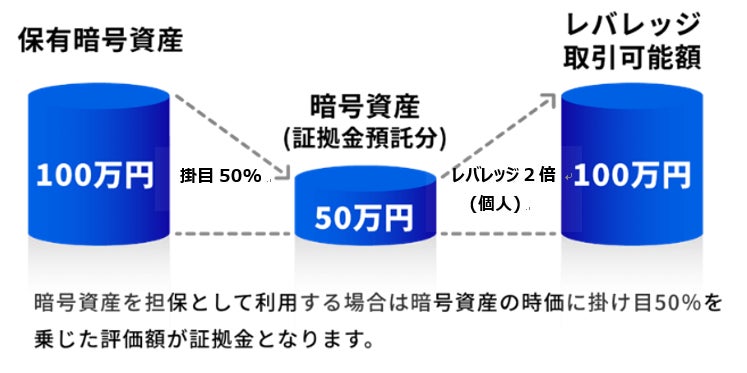 保有暗号資産に対するレバレッジ取引可能額は以下の通りです。