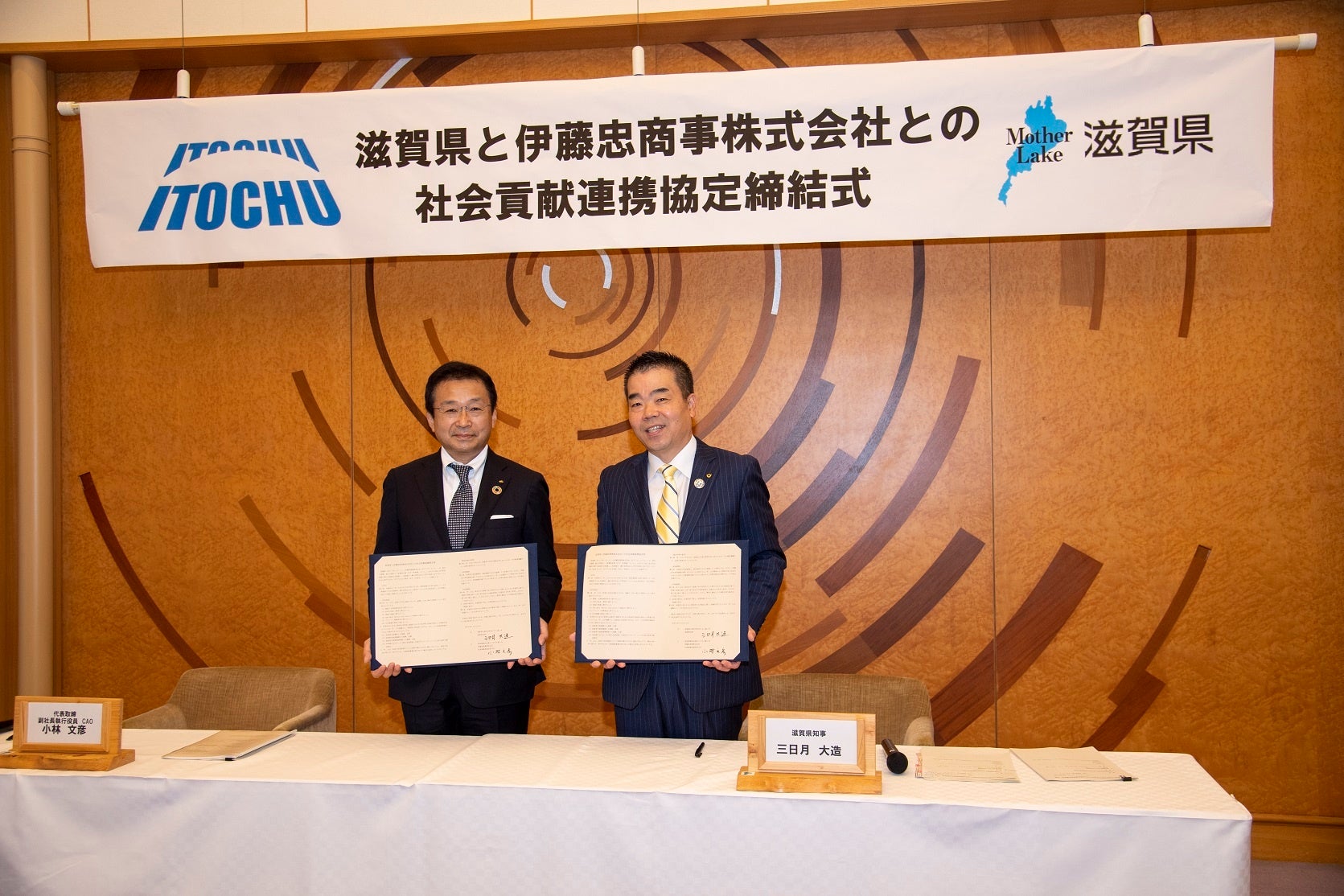それぞれが有する人的・物的資源を有効に活用して連携し、地域の活性化や県民サービスを向上し、SDGsに貢献することを目的として、「滋賀県と伊藤忠商事株式会社との社会貢献連携協定」を10月28日(金)に締結しました。