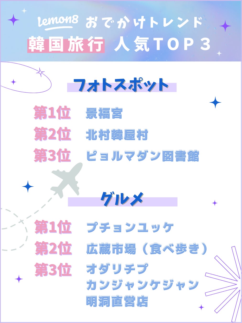 人気の「景福宮」エリアのおすすめルート、韓国女子旅2泊3日リアル体験プランなど、人気スポットをまとめたモデルコースはLemon8内で保存数が上昇傾向です。