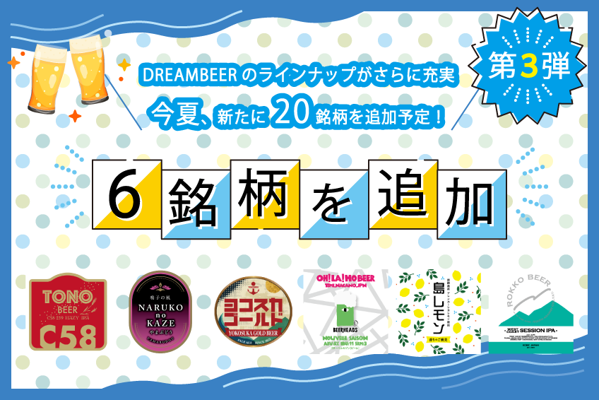 全国のクラフトビールを家庭用本格ビールサーバーで楽しめるDREAMBEER 今夏に向けたラインナップ拡充第3弾!新たに6銘柄を追加し、取り扱い銘柄数は60ブルワリー130銘柄を突破いたしました!