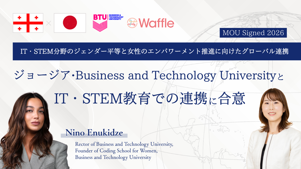 NPO法人Waffle(所在地:東京都港区、理事長:田中 沙弥果、以下Waffle)は、ジョージアのビジネス・テクノロジー大学(Business and Technology University、所在地:ジョージア・トビリシ、学長:ニノ・エヌキゼ、以下BTU)と、IT・STEM分野におけるジェンダー平等と女性・女子の参画促進を目的とした連携に関して、基本合意いたしました。