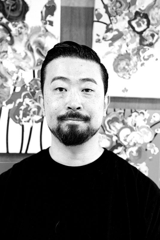 COVID-19をはじめとする病疫や自然災害は私たちの日常に耐えがたいダメージをもたらす一方、しかし絶対不変のように思われていた日常がじつは脆く、壊れやすく、そして掛け替えのないものであり、そのありがたみを示唆します。シリーズの一つ「with gratitude」では、普段は意識することはない当たり前に感謝することをテーマにそえ、同時に鑑賞者への感謝を伝えるため、絵画を献花と見立て、花をモチーフとした作品に仕上げています。混ざり合う絵具から生まれる偶発性、そしてペンによる緻密な必然性を織り交ぜ、そうした偶発的に訪れる不条理や困難な状況を必然へと、つまり自分の意志によって切り開くことをイメージしています。もう一つのシリーズである「with courtesy」は、日本の美術や文化に通底する、「型の思想」を現代的な視点から再考し、作品化したものです。武道や茶道、庭園美術など、日本文化には自分自身を律し、整えることで生まれる美しさがあります。盆栽をモチーフに取り入れて色彩を抑えたこのシリーズは、「with gratitude」の背景と同様、時として訪れる不条理においても冷静さを保ち、人間としての美しさを失わないことの重要さを根底においています。現在は、個展やアートフェアなど国内外問わず精力的に作品を発表し続けている。