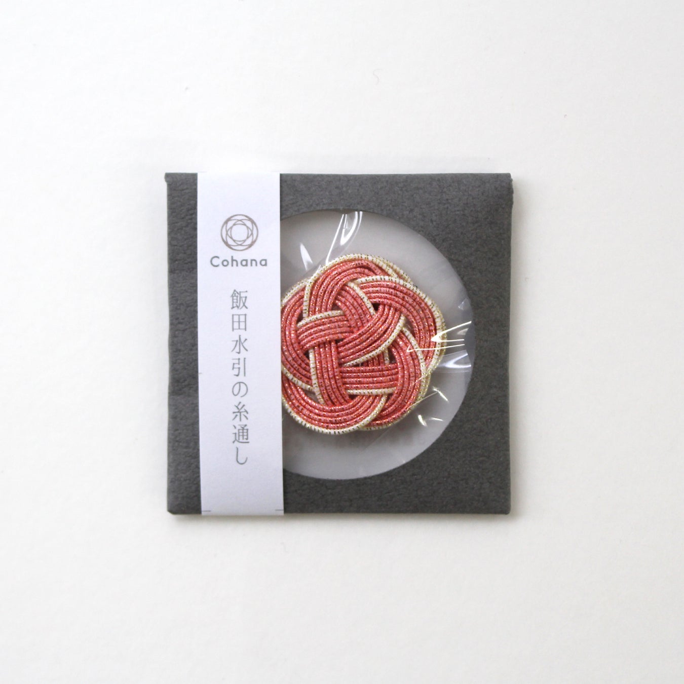 長野県に古くから受け継がれている飯田水引の糸通し。水引は「梅結び」という結び方です。梅の花が冬を乗り越え春に先駆けて咲くことから、開運の意味を持つとても縁起の良い結びです。