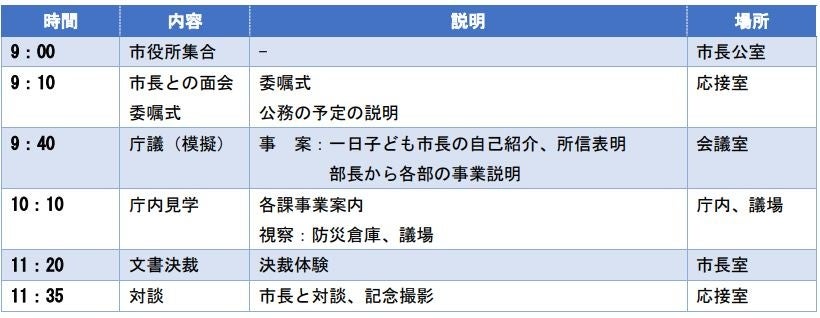 この事業は市制施行50周年記念事業のひとつで、市内の小学6年生が1日子ども市長に就任します。