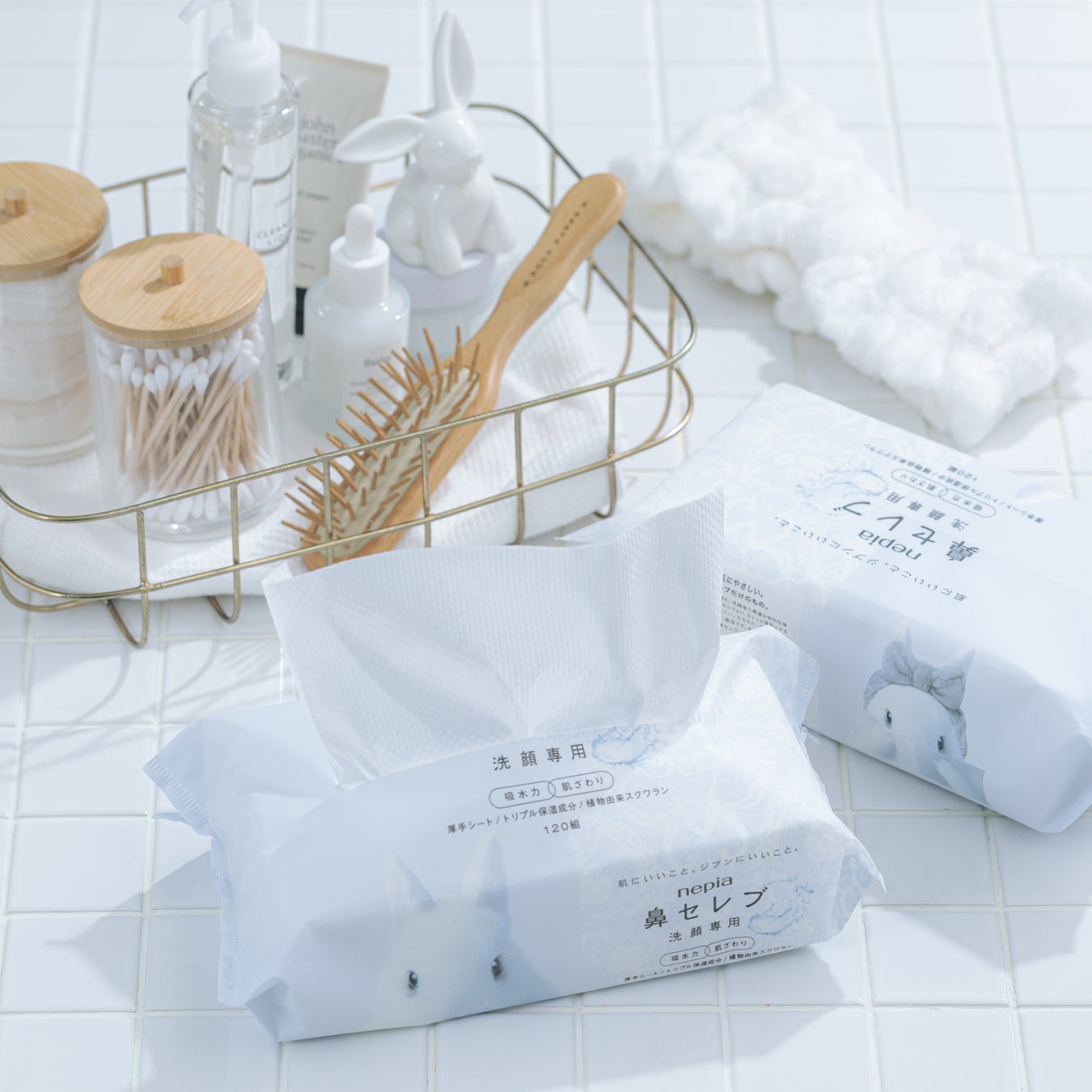 「ネピア 鼻セレブティシュ」は2024年に誕生20周年を迎え、「“やさしさ”を理念に潤いを届けてきた鼻セレブブランドだからこそ、お肌のお手入れのために何かできることがあるのでは?」という視点から、2023年3月には洗顔用ペーパータオル「ネピア 鼻セレブ洗顔専用」が誕生しました。