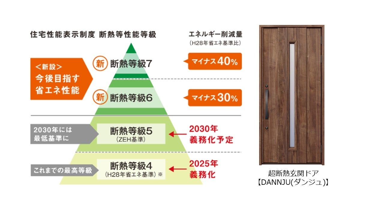 断熱等級7の早期対応を可能にした、超断熱玄関ドア「DANNJU(ダンジュ)」は、「2023年度 省エネ大賞(製品・ビジネスモデル部門)」において、「省エネルギーセンター会長賞」を受賞しています。