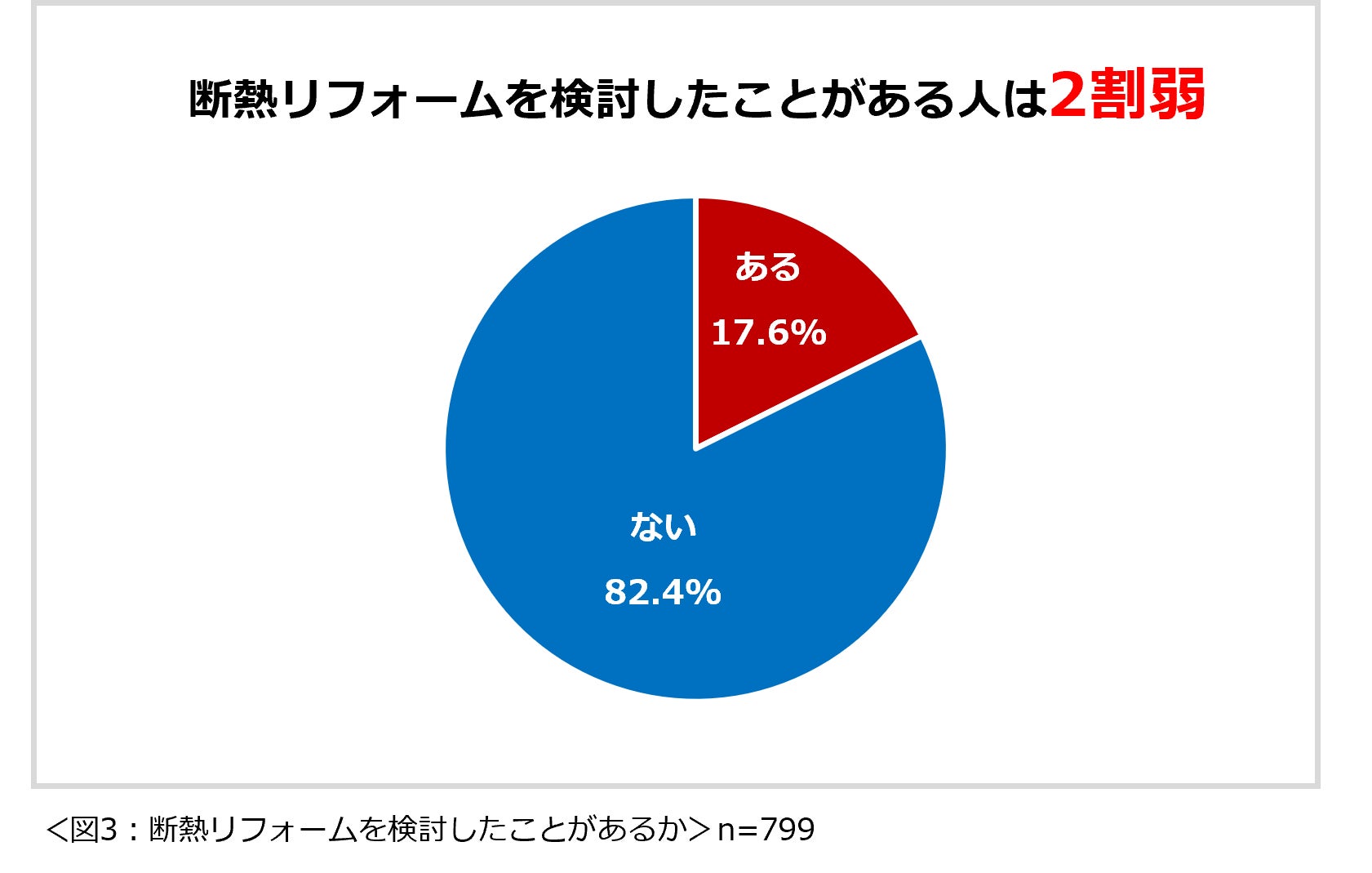 なお、断熱リフォームを検討したことがある人は2割弱でした。(図3)