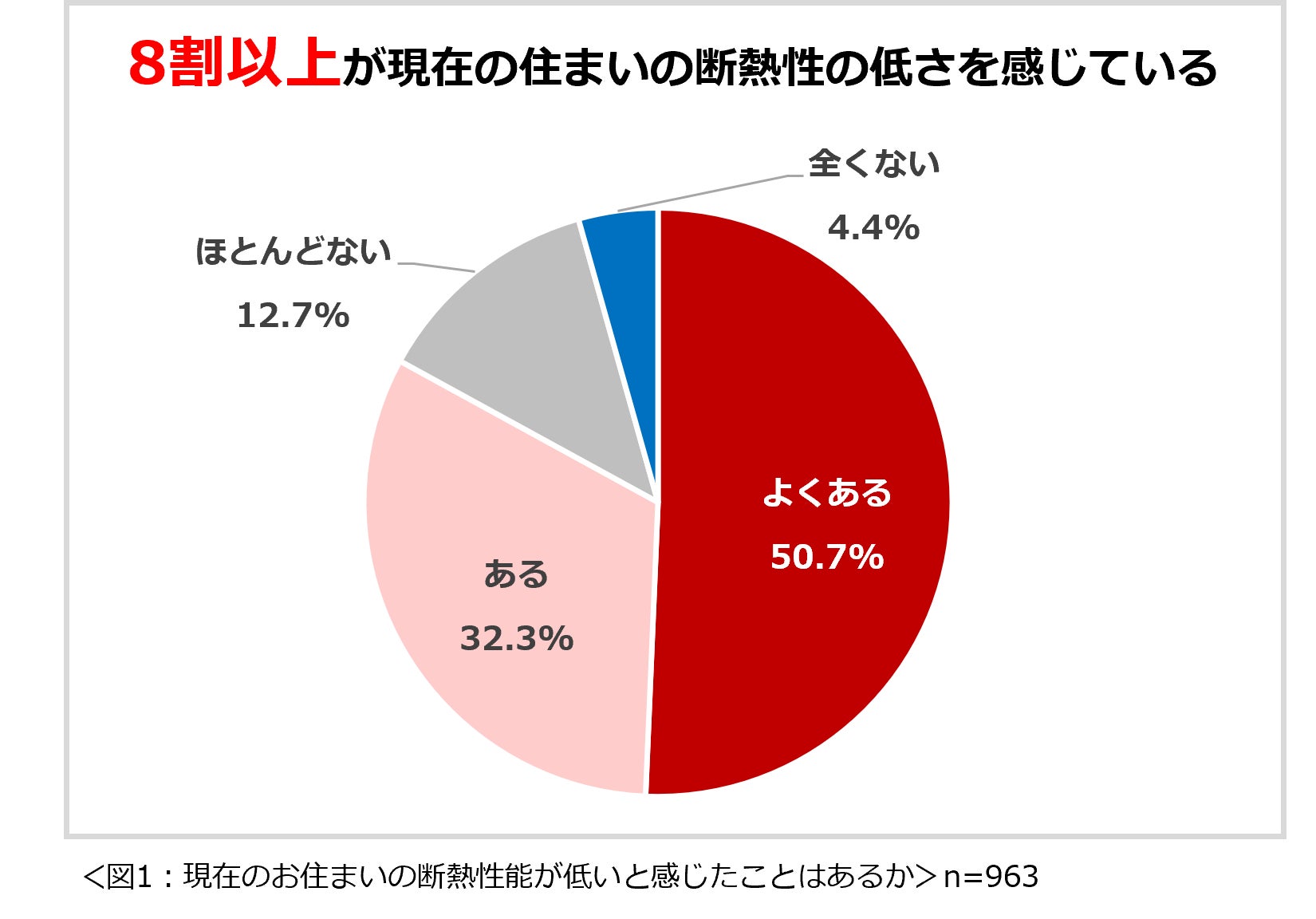 現在のお住まいの断熱性能が低いと感じたことがある人は8割以上。