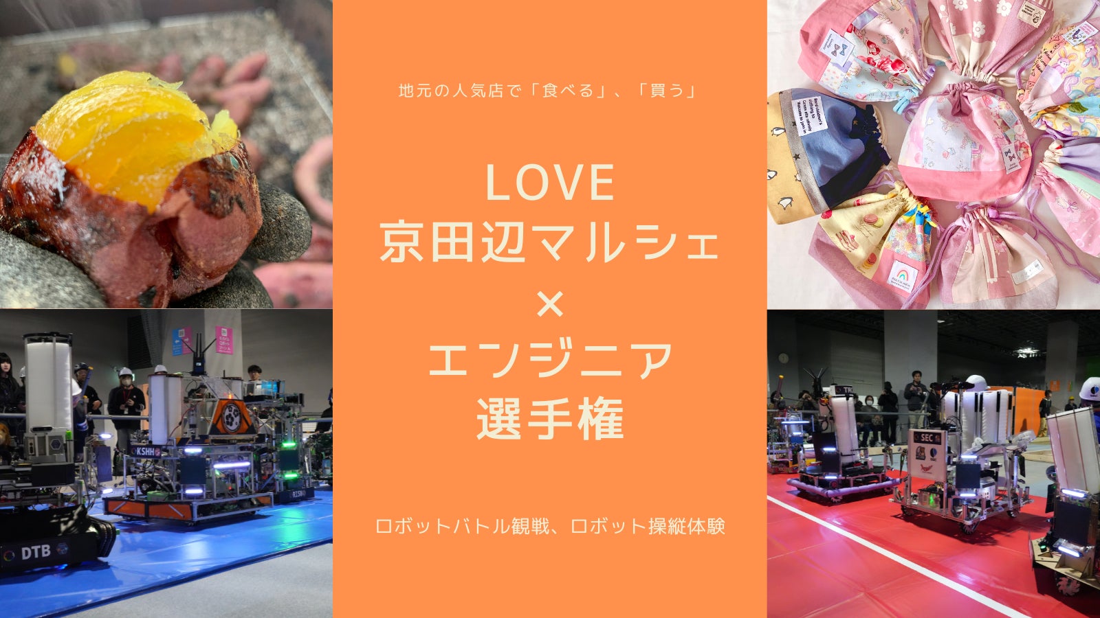 LOVE京田辺マルシェ(主催:京田辺農福観地域づくり協議会)がエンジニア選手権(主催:一般社団法人次世代ロボットエンジニア支援機構)にやってきます。イベントは2025年3月29日(土)および30日(日)に、島津アリーナ京都で開催いたします。