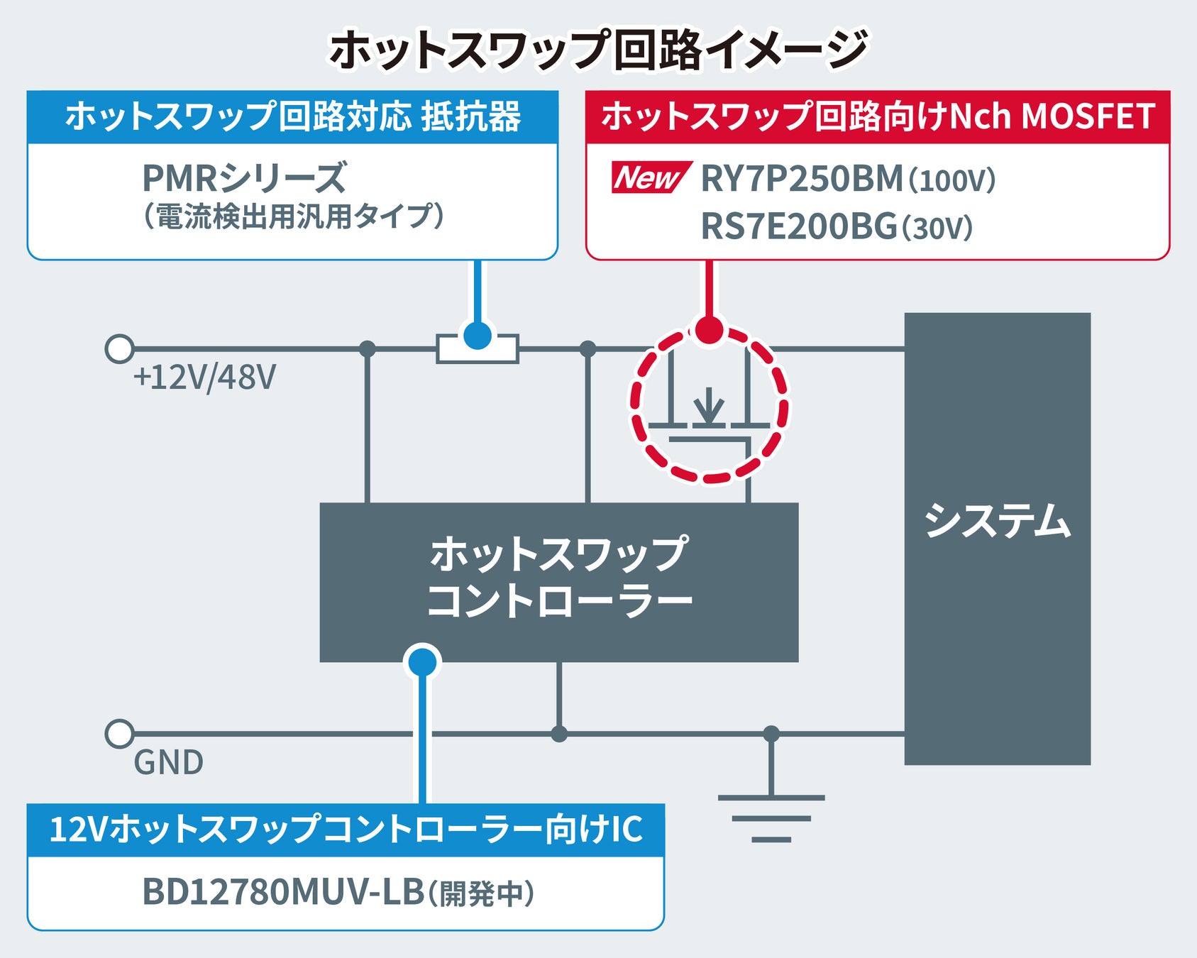 48V系統AI(人工知能)サーバーや、データセンターの電源ホットスワップ回路