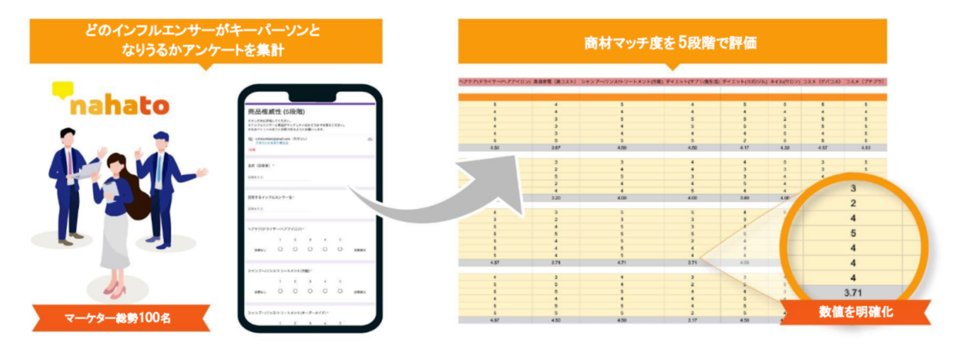 ナハトでは総勢100名以上のマーケティングプロによるアンケート調査を実施し、実際のデータに基づいてキーパーソンを特定しています。例えば、美容系インフルエンサーでも、「プチプラコスメ」「デパコス」「ヘアケア」など、それぞれ得意分野が異なり、同じインフルエンサーでも投稿内容によってエンゲージメント率に大きな差が生まれることを数値で証明しています。このような詳細な分析により、商材に最も適したキーパーソンを科学的に選定し、確実な成果創出を実現します。