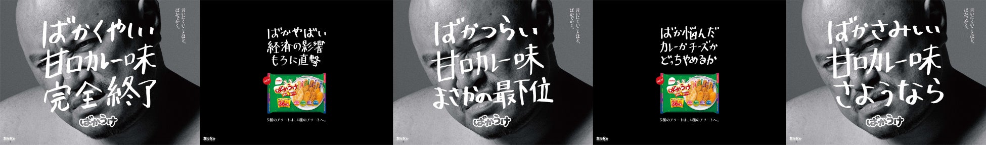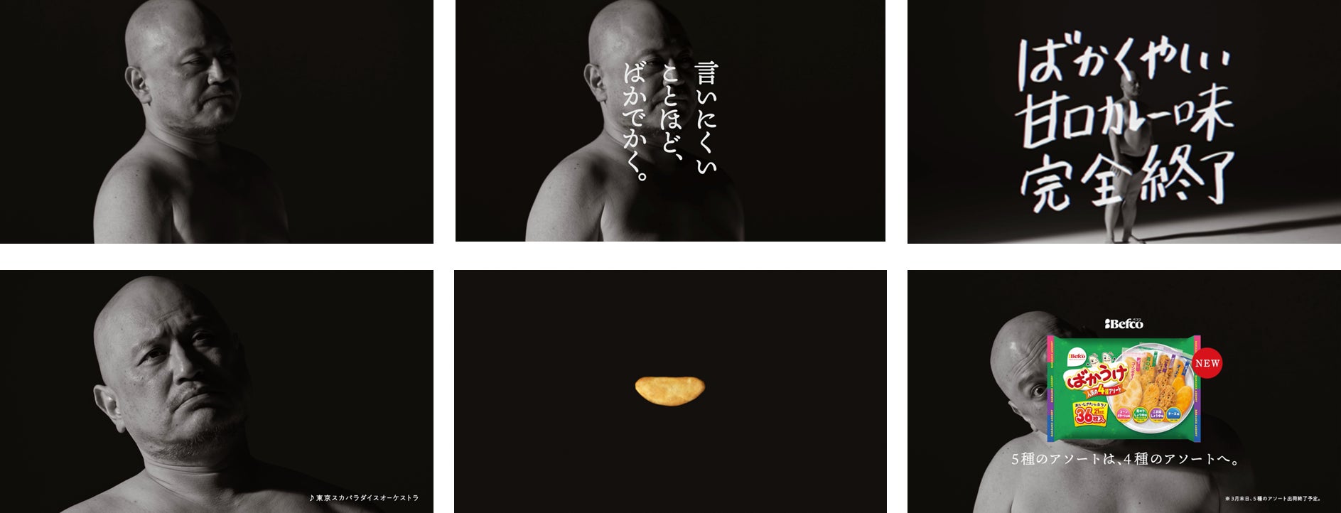 CMのコンセプトは「言いにくいことほど、ばかでかく」。今回のテーマである甘口カレー味の終了は、非常に申し上げにくいことでした。しかし、この事実をはっきりと赤裸々に表現することも「ばかうけ」らしさだと考えました。普段はハイテンションなハリウッドザコシショウさんですが、今回は終始悲しげな表情をしていただき、 “ばかくやしい”気持ちを演出しています。加えて、窪田等さんのナレーションの声量やテロップの大きさを、「ばかでかく」することで、当社の無念な気持ちを表現しました。当社のくやしい思いを感じ取っていただけましたら幸いです。