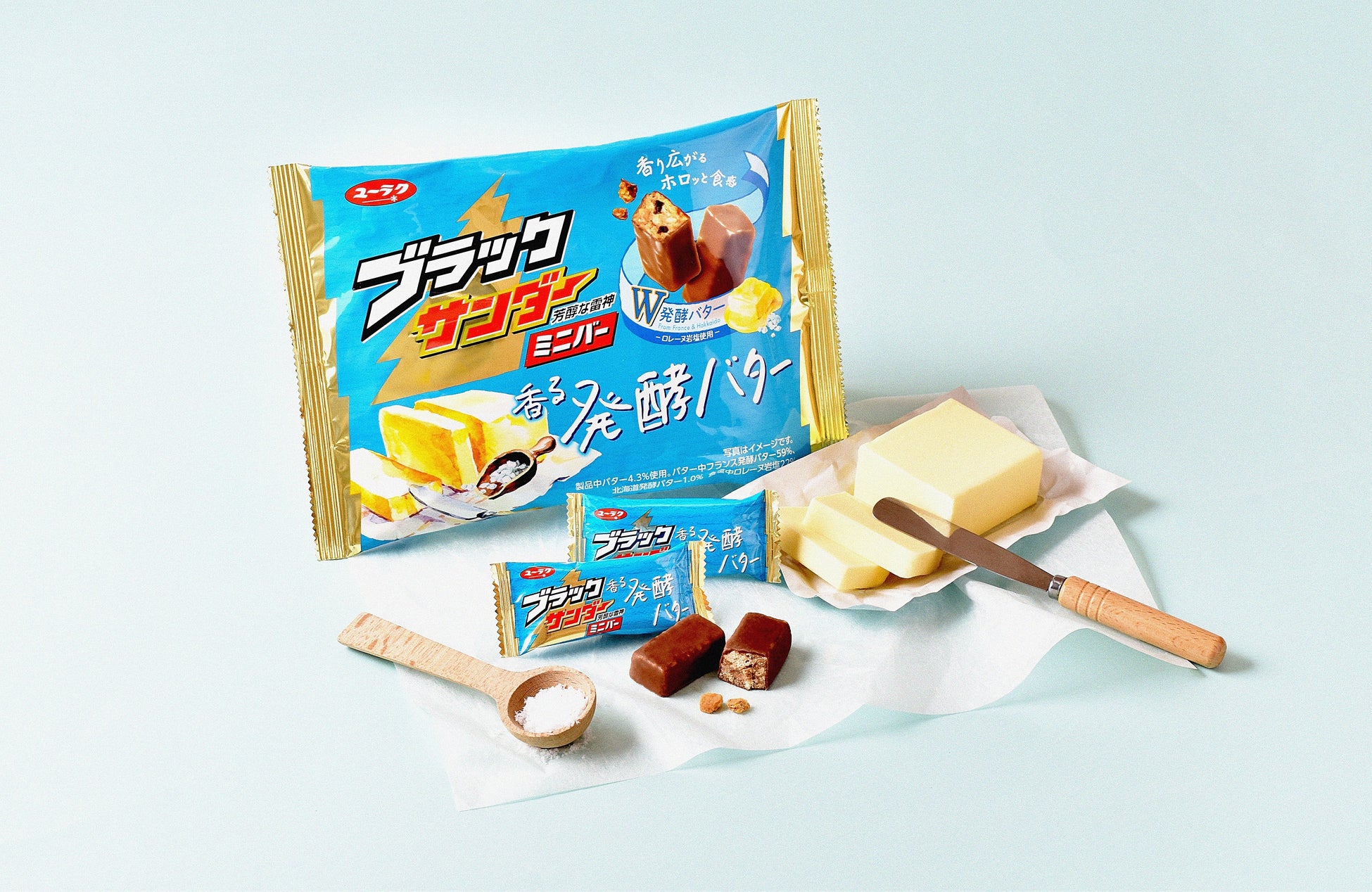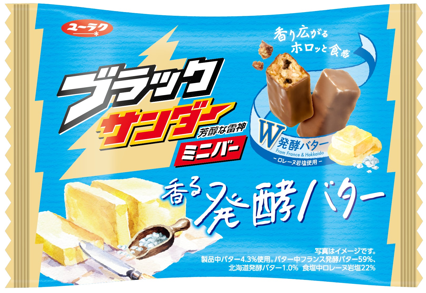 この度、「ブラックサンダーミニバーシリーズ」より、昨年、春夏商品として発売しご好評いただきました「ブラックサンダーミニバー香る発酵バター」をリニューアルし、発売いたします。