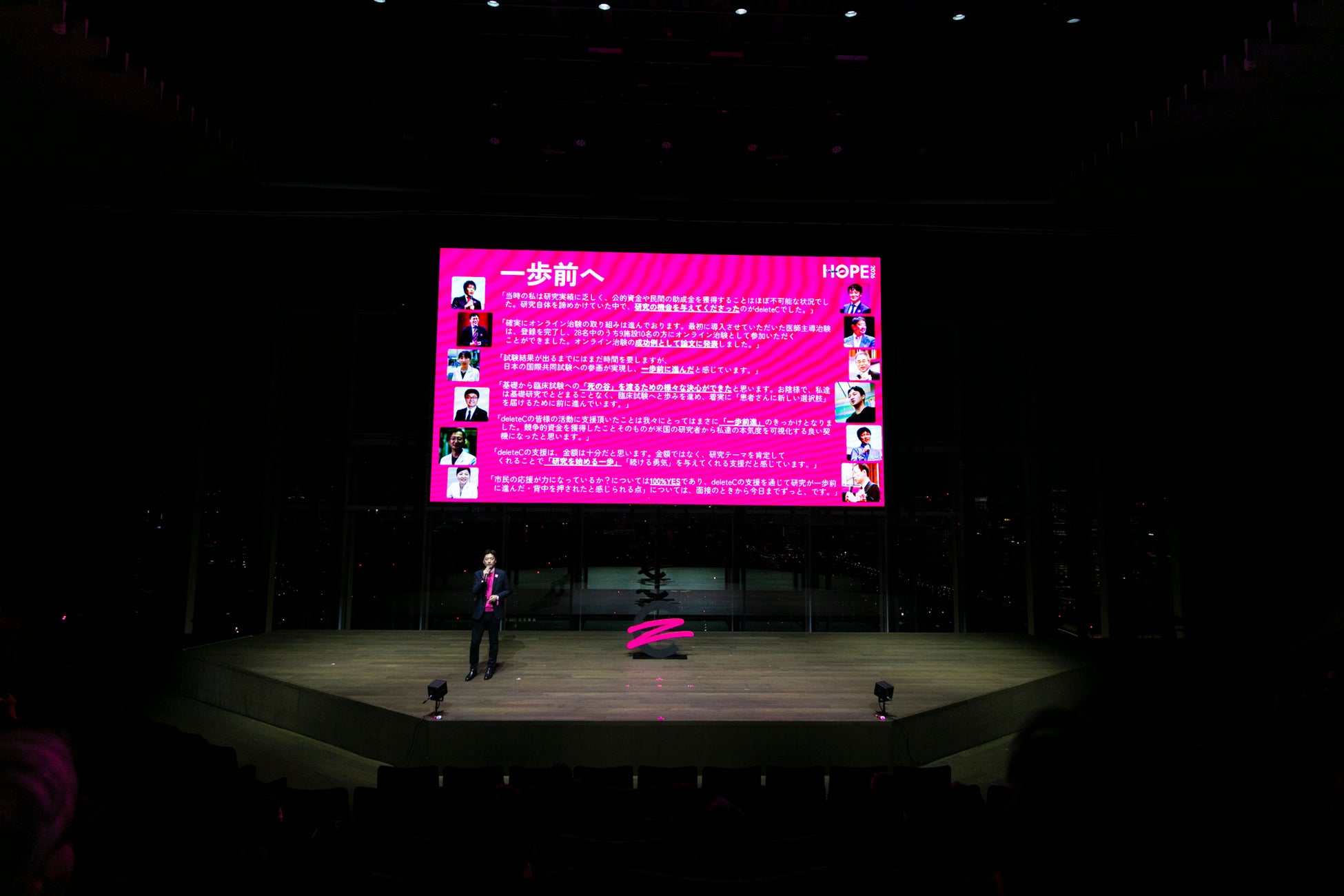 授賞式の会場には200名を超える、市民・企業関係者・医師研究者・がん当事者・学生・アスリート・俳優・メディア関係者が参加し、がん治療研究が「希望の種」であることを伝え、今年は「with HOPE」というコンセプトのもと、 全国に広がった希望の風景を参加者とともに振り返りました。初の試みとして、「CSAアワード」と題して、がん治療研究を前に進める新たな一歩を後押しし、deleteCの活動が広がるきっかけとなった市民や企業の8つのカジュアルソーシャルアクションを発表しました。さらに、2026年度の新方針「立ち上がり研究」のコンセプトも新たに報告され、これまで支援してきた研究者の声や今後の展望が語られました。