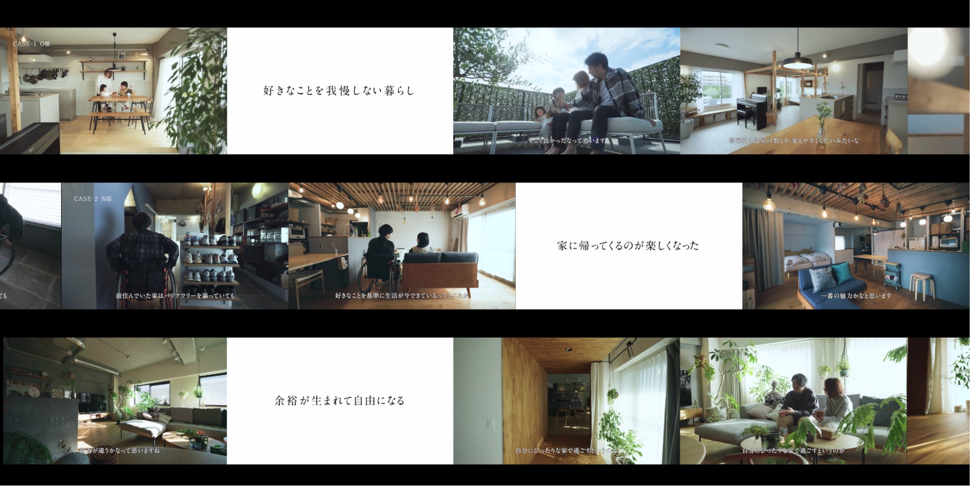 本ムービーは「自由な住まい」で暮らす3邸の、何気ない日常のシーンとインタビューで構成しています。