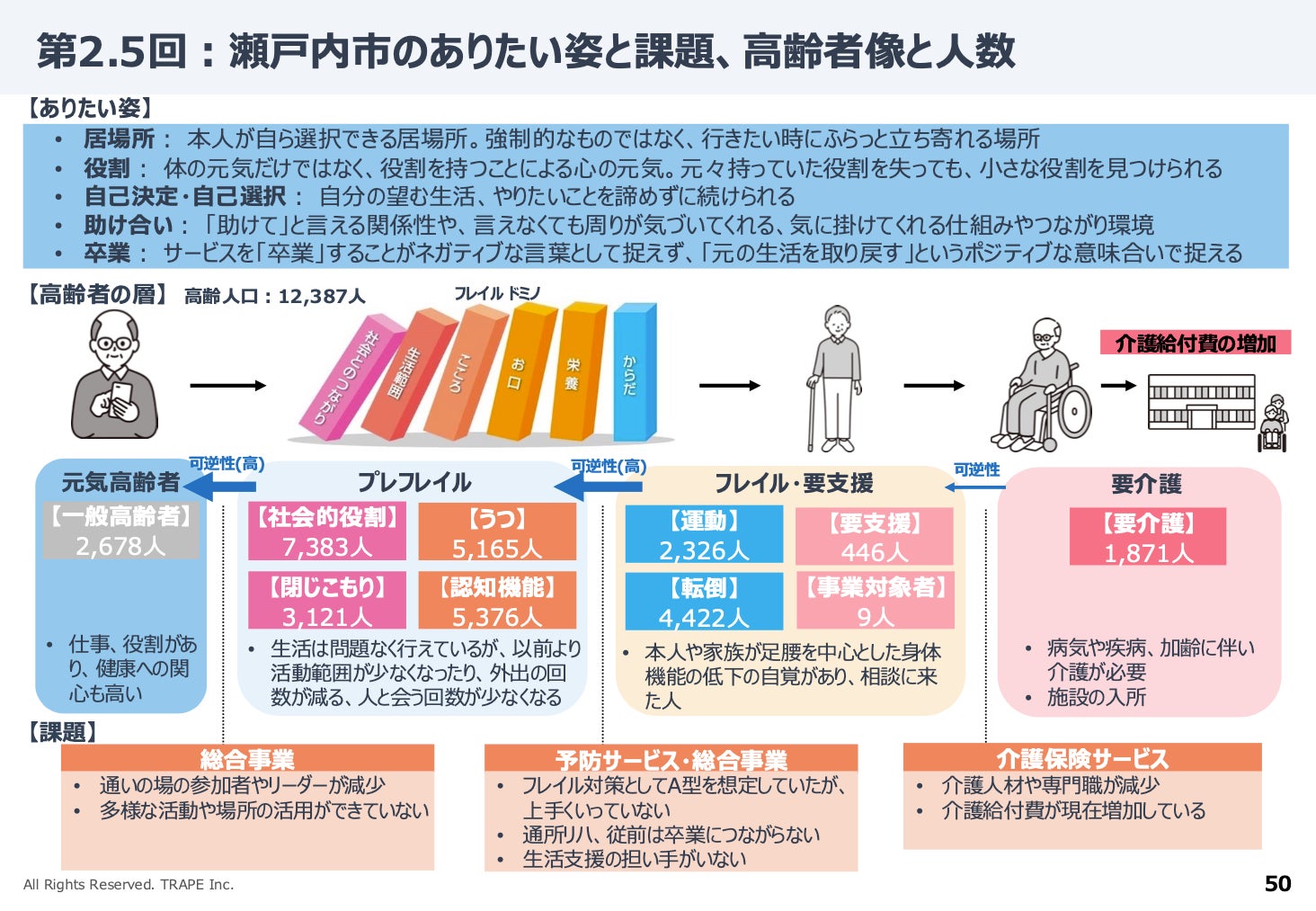 瀬戸内市の課題、ありたい姿をもとに、短期集中サービス(リエイブルメント)のモデル事業案を作成することができた