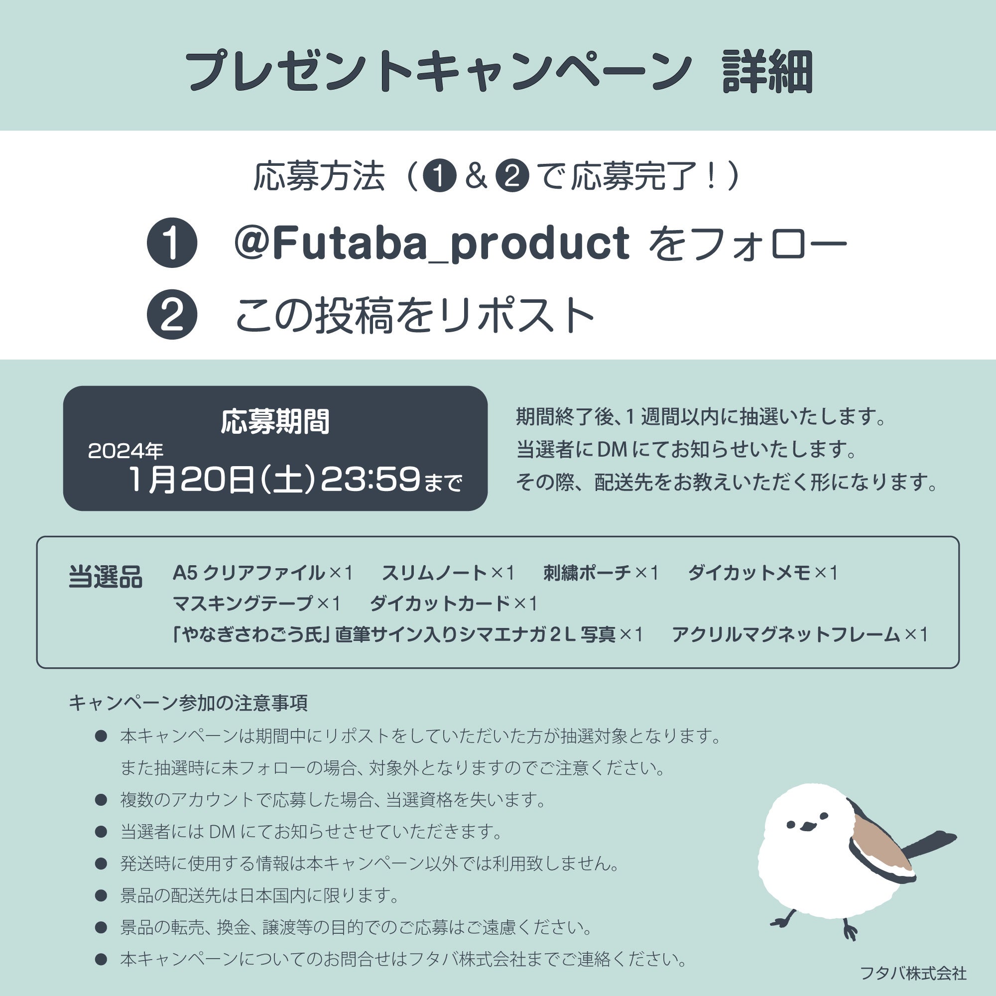 フタバ株式会社のXアカウントをリポスト&フォローをするだけで応募完了!