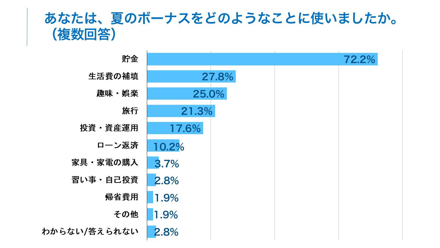 【Q1】夏のボーナスの使い道、「貯金」「生活費の補填」に続き、消費傾向